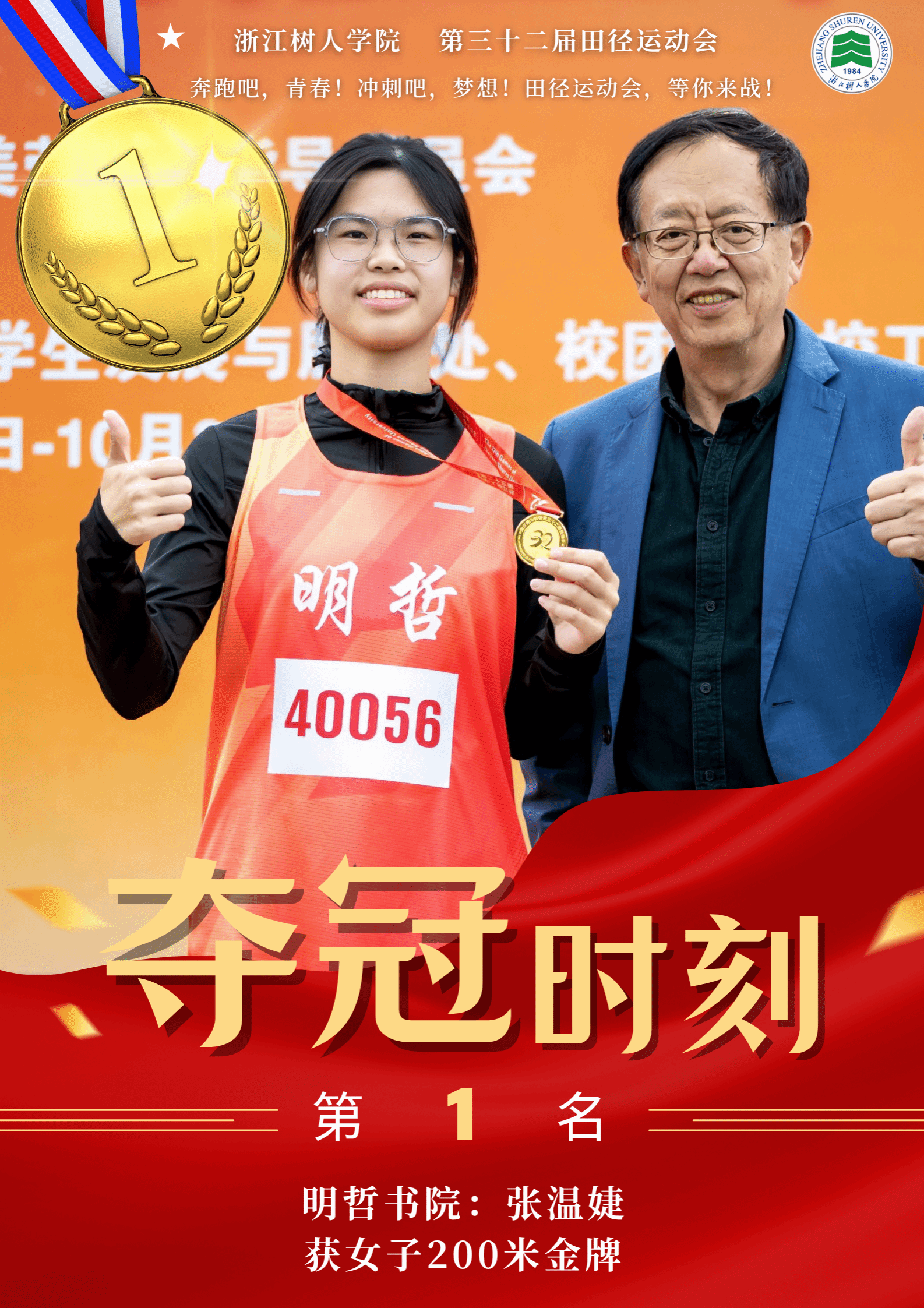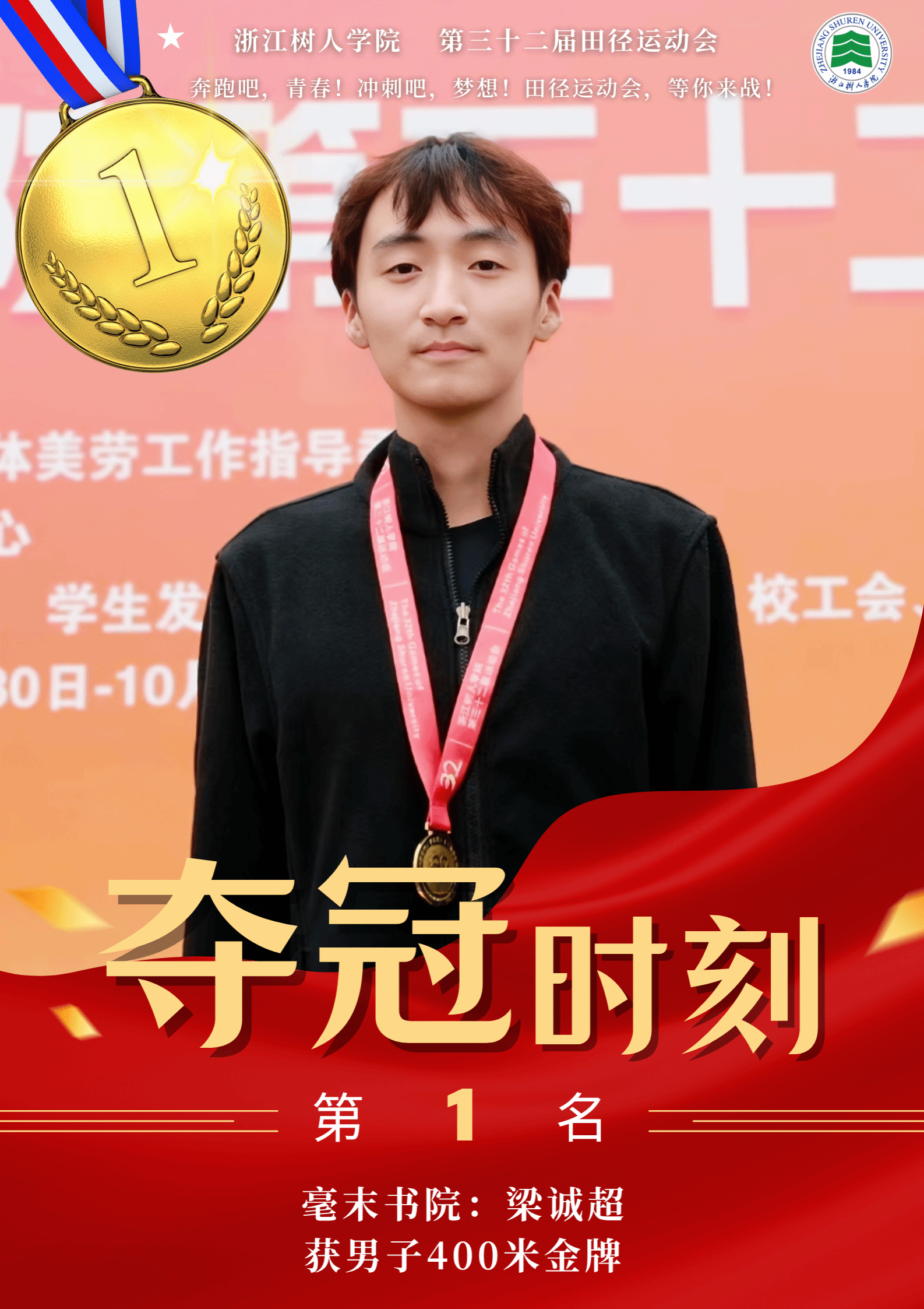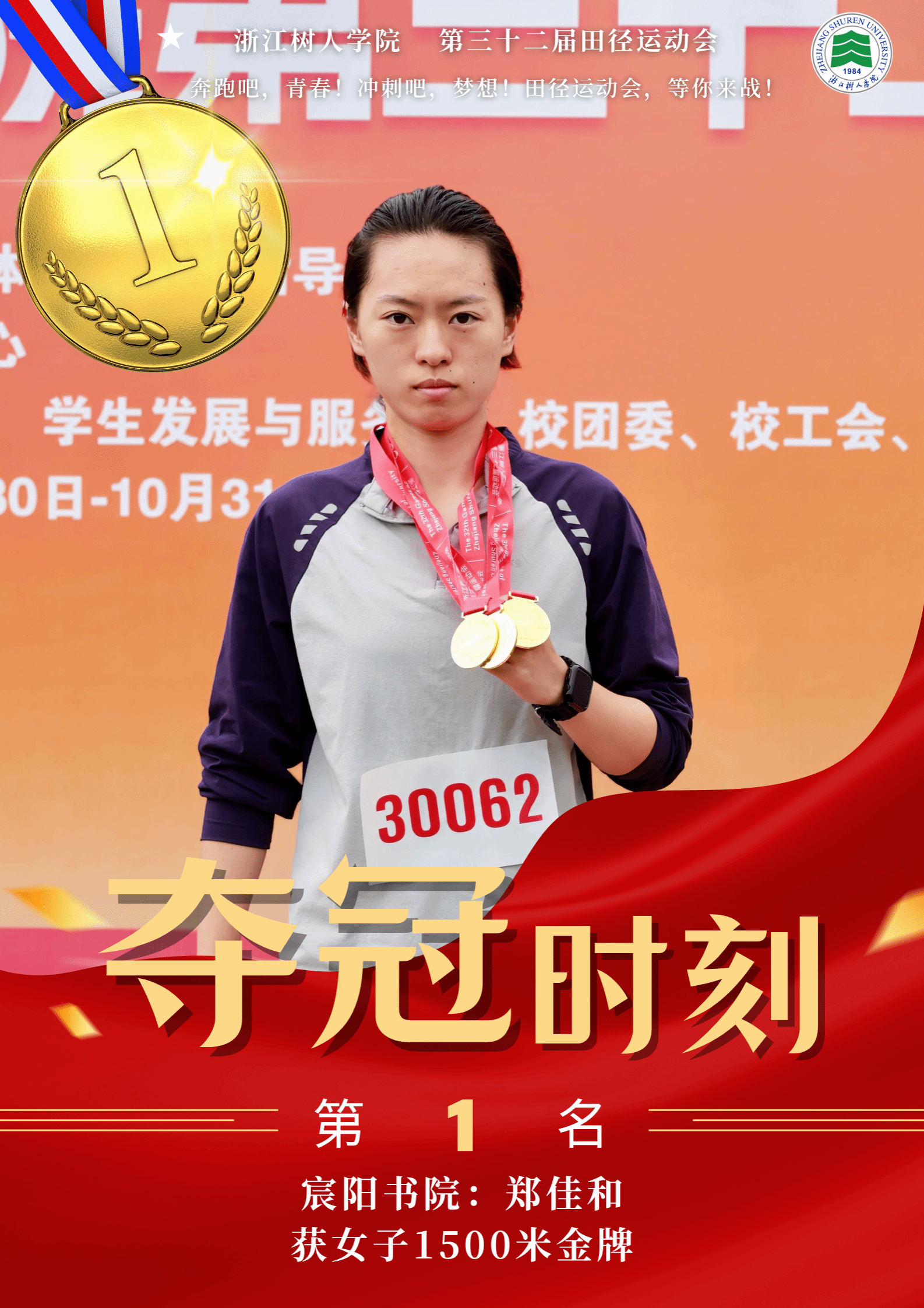 赛场上,运动健儿奋勇争先,以速度与力量挑战极限,以毅力与协作诠释体育精神。男子组中,明哲书院(城建学院)金霁腾、宸阳书院(城建学院)林安城分别以36.38.63和36.43.22的成绩在10000米长跑中打破纪录,并分获冠亚军。女子组中,宸阳书院(经济与管理学院)江畅在100米栏中以17.31秒刷新纪录。集体项目中,崇德书院与宸阳书院分获男子、女子接力冠军,展现出卓越的团队协作精神。