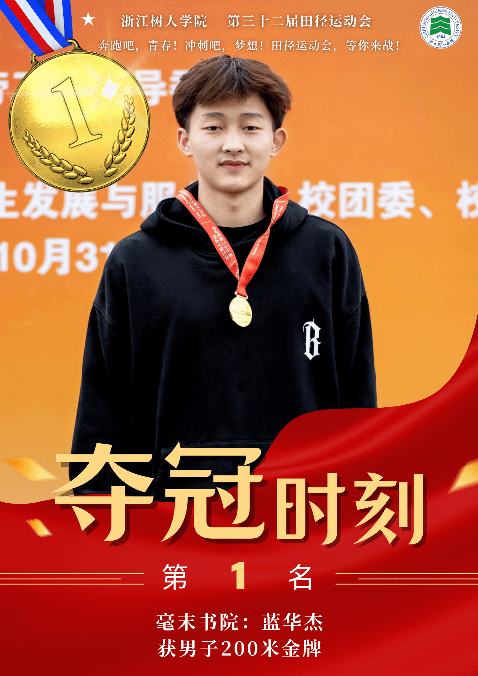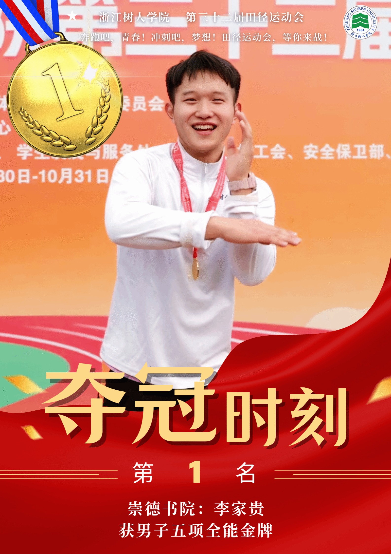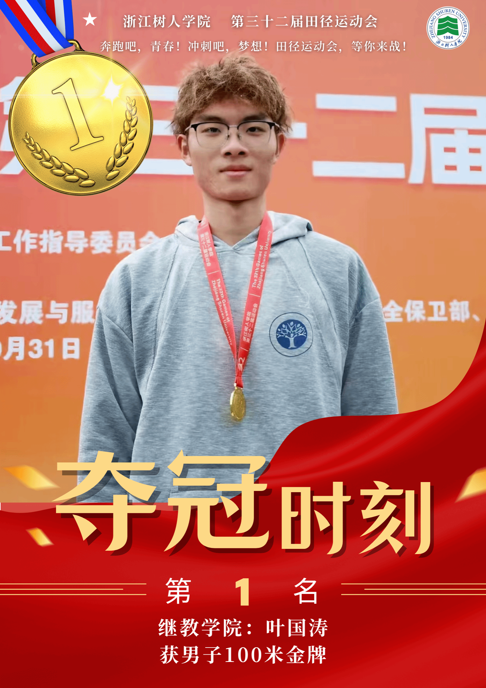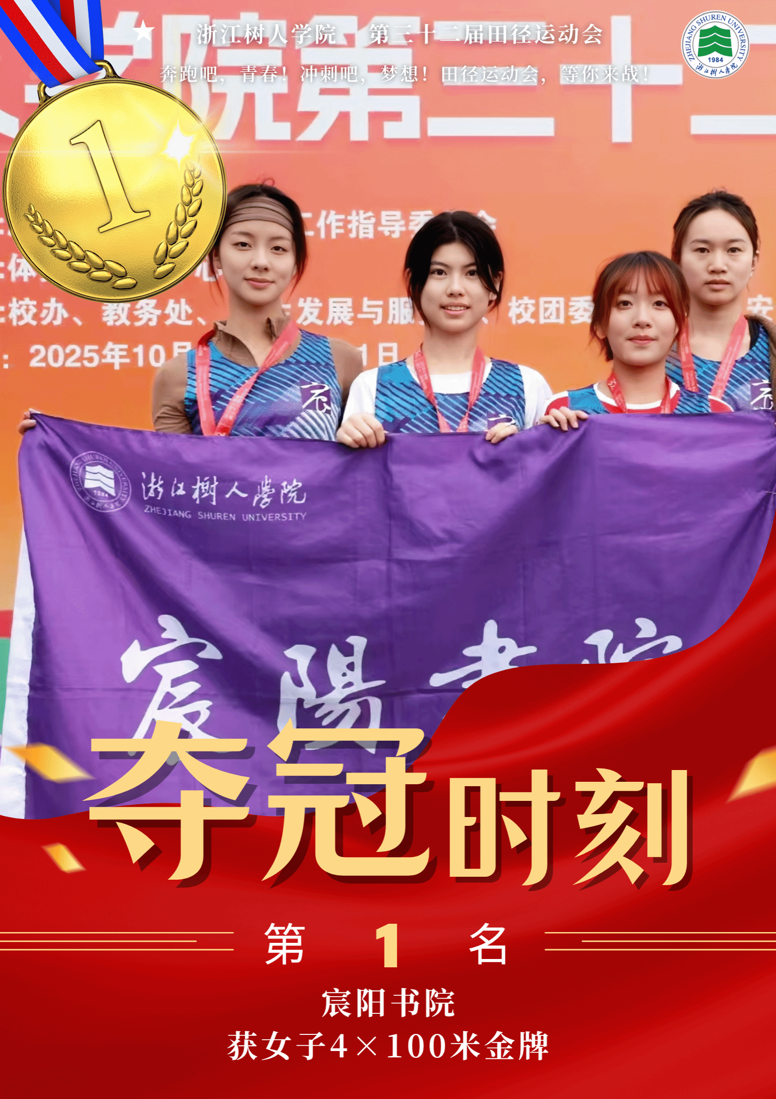 赛场上,运动健儿奋勇争先,以速度与力量挑战极限,以毅力与协作诠释体育精神。男子组中,明哲书院(城建学院)金霁腾、宸阳书院(城建学院)林安城分别以36.38.63和36.43.22的成绩在10000米长跑中打破纪录,并分获冠亚军。女子组中,宸阳书院(经济与管理学院)江畅在100米栏中以17.31秒刷新纪录。集体项目中,崇德书院与宸阳书院分获男子、女子接力冠军,展现出卓越的团队协作精神。