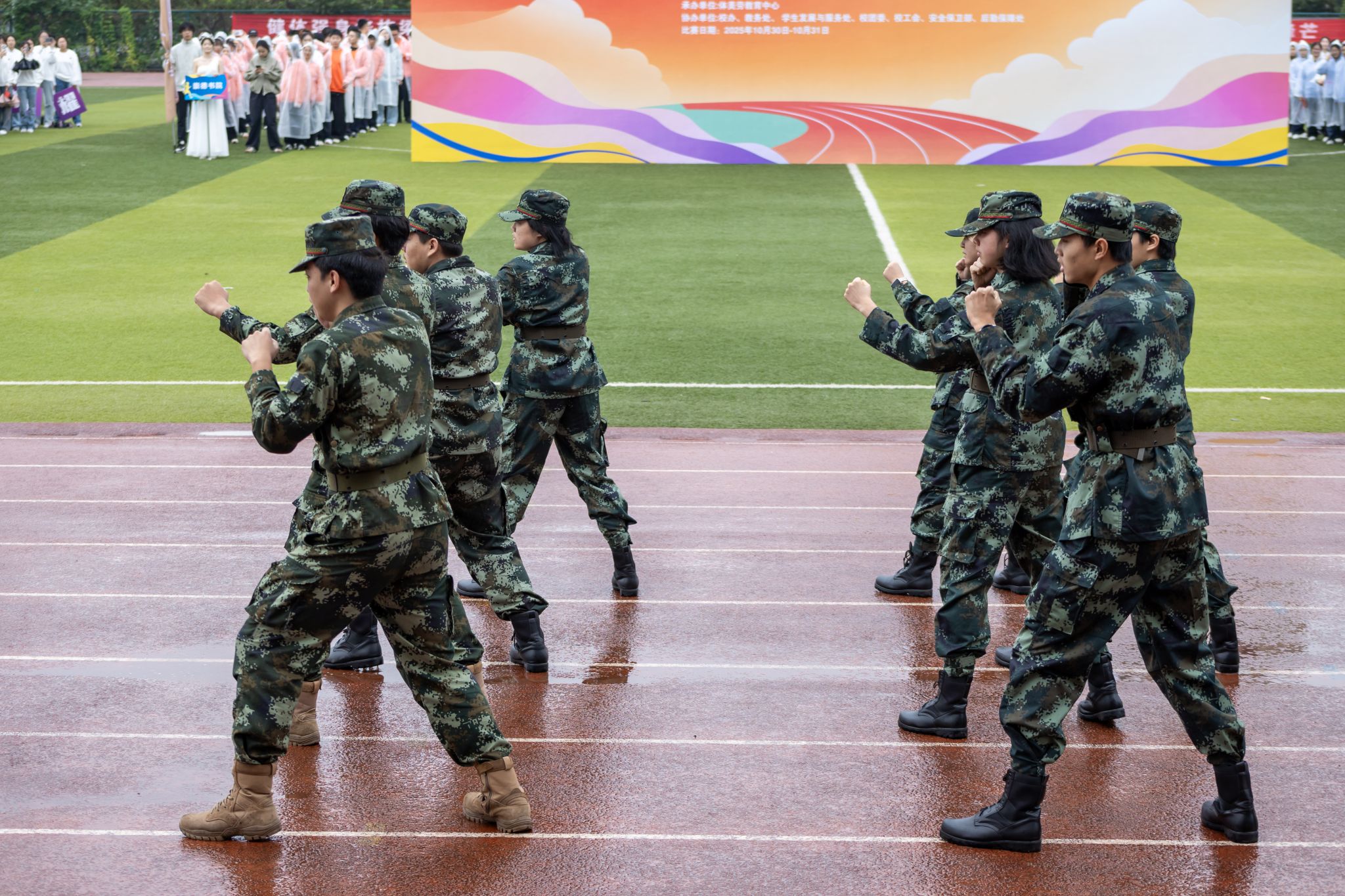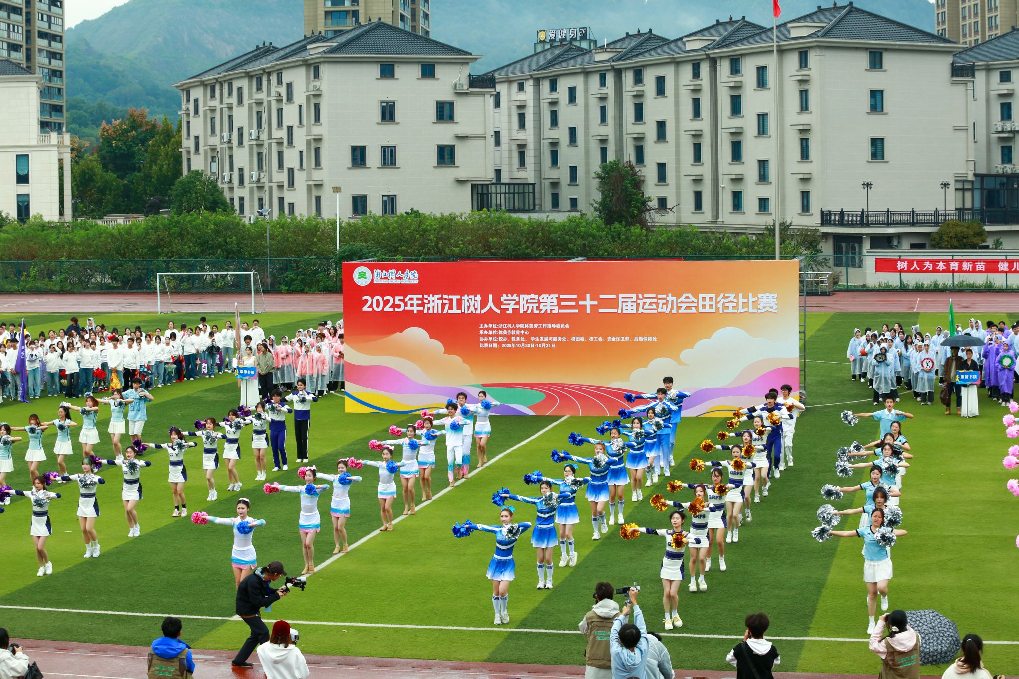 随后,团体操表演精彩上演,军体拳、啦啦操、健美操等节目轮番亮相,配合齐唱《树人之歌》,将现场气氛推向高潮。