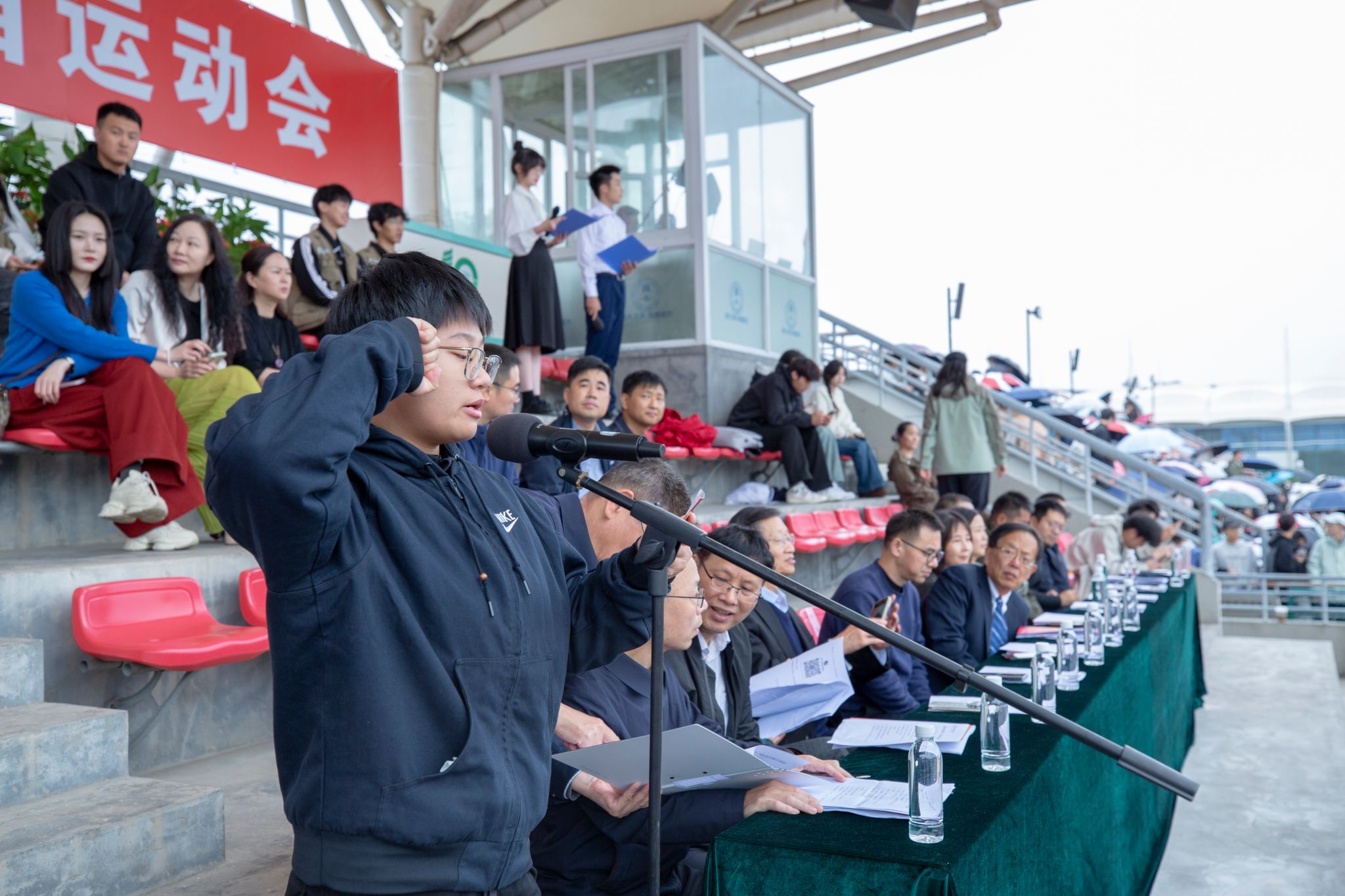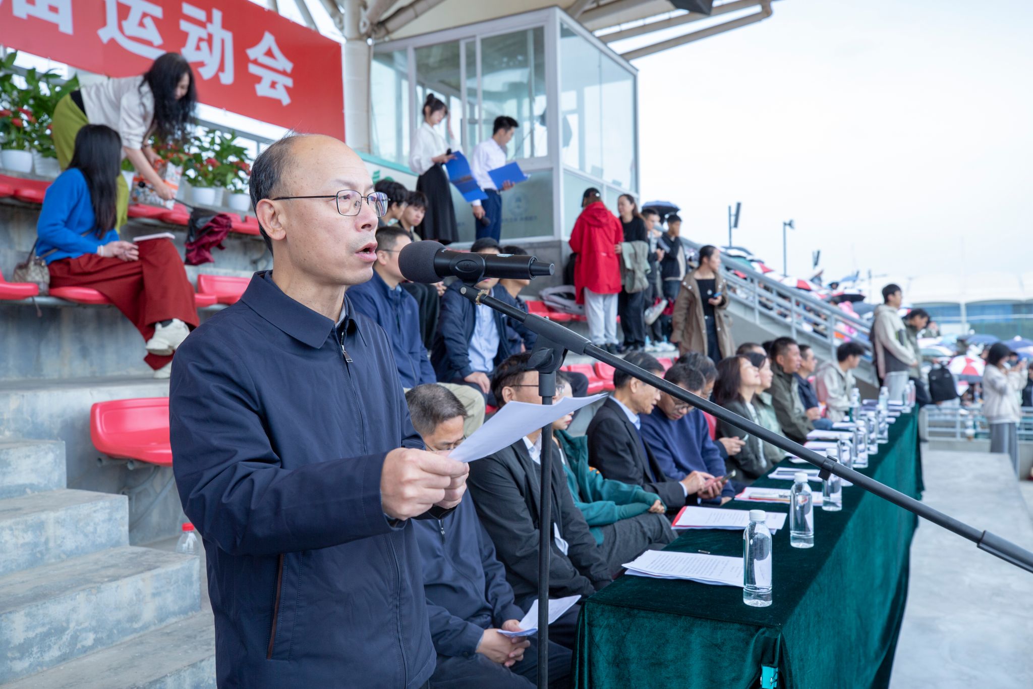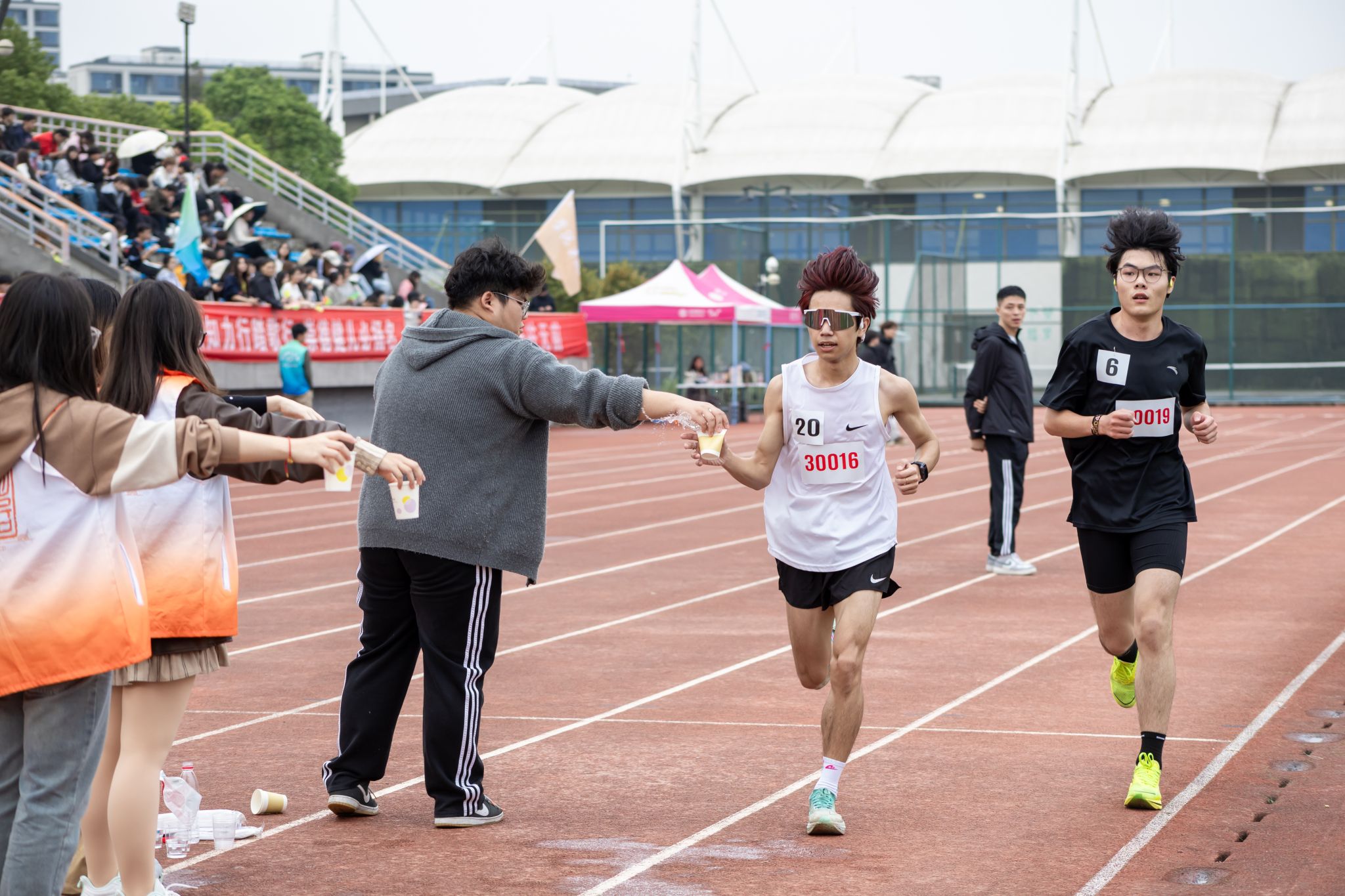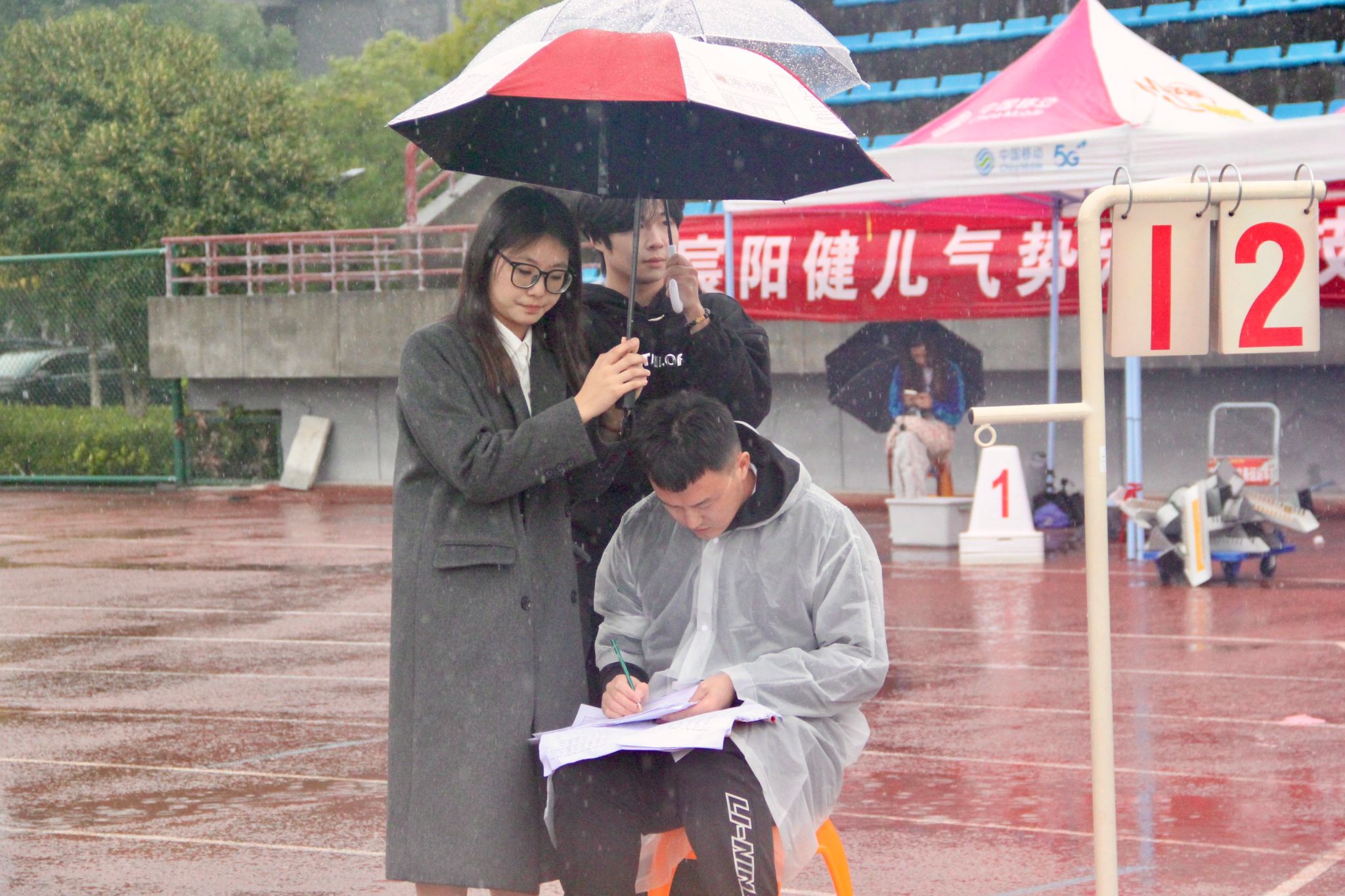 赛场上,运动健儿挥洒汗水;赛场下,工作人员默默耕耘。精准的秒表,丈量着公正;沙哑的嗓音,维系着秩序;忙碌的身影,保障着顺畅;及时的援手,传递着关怀。他们是运动会上“无名”的英雄,同样闪耀着最耀眼的光芒。