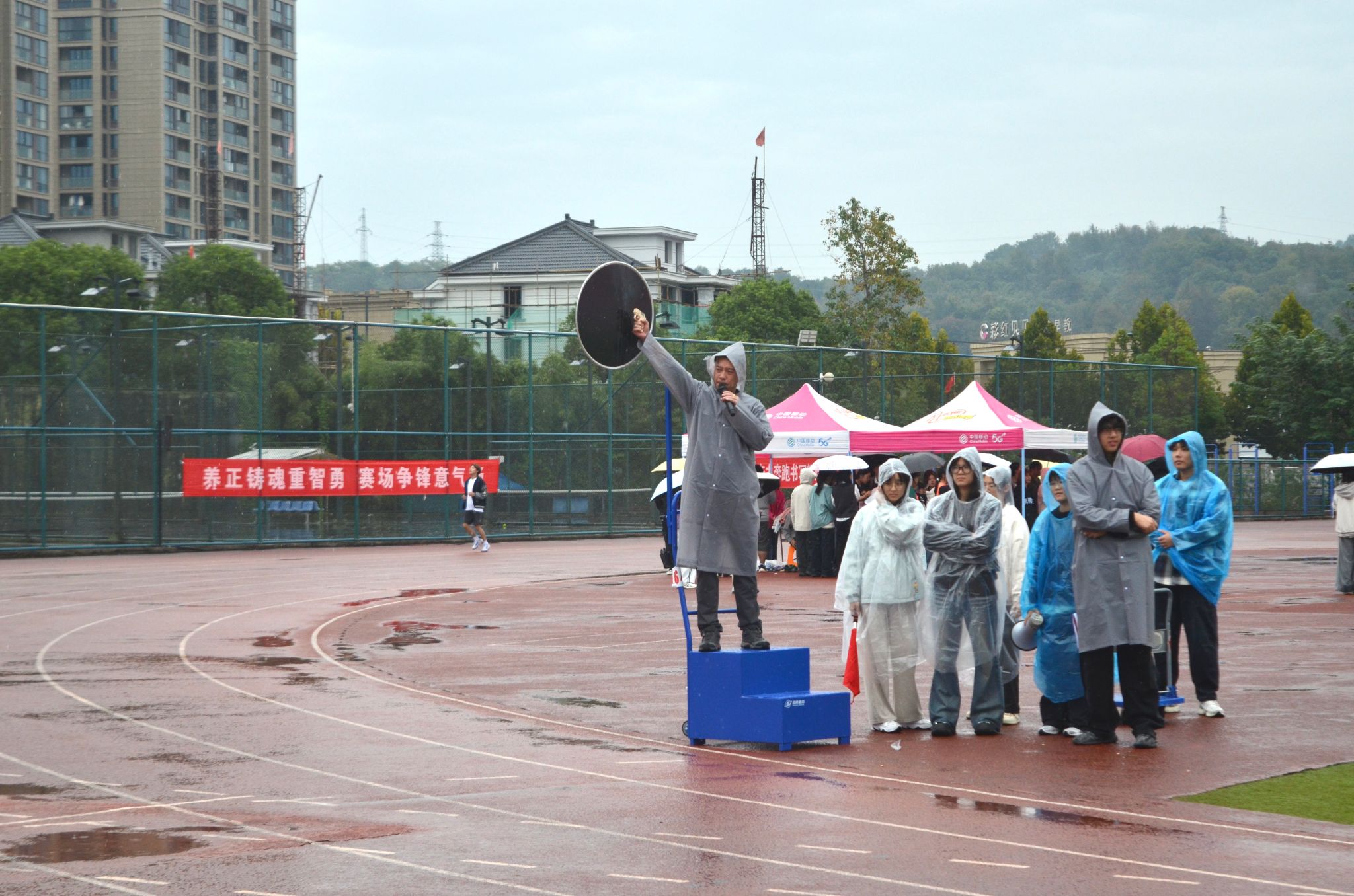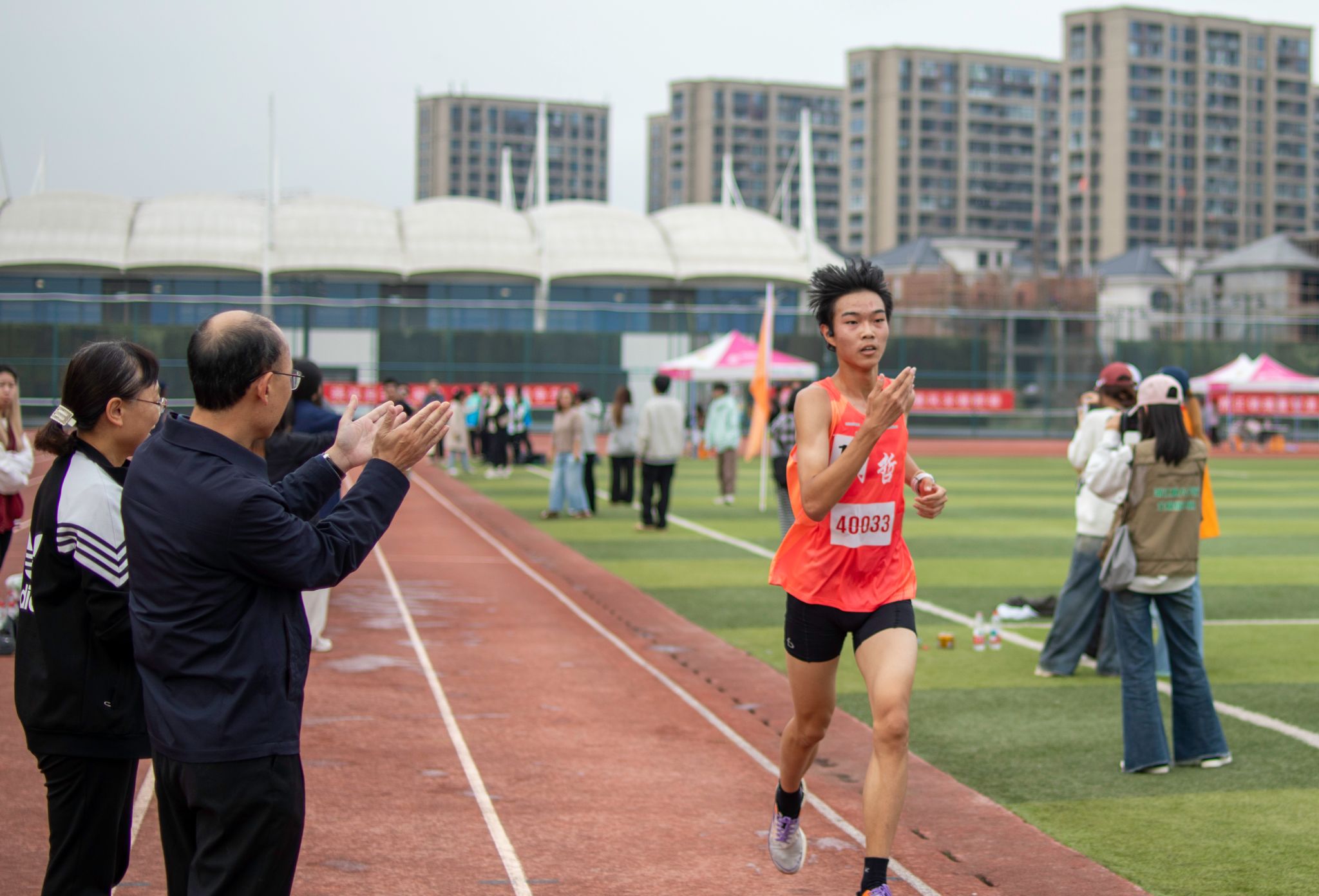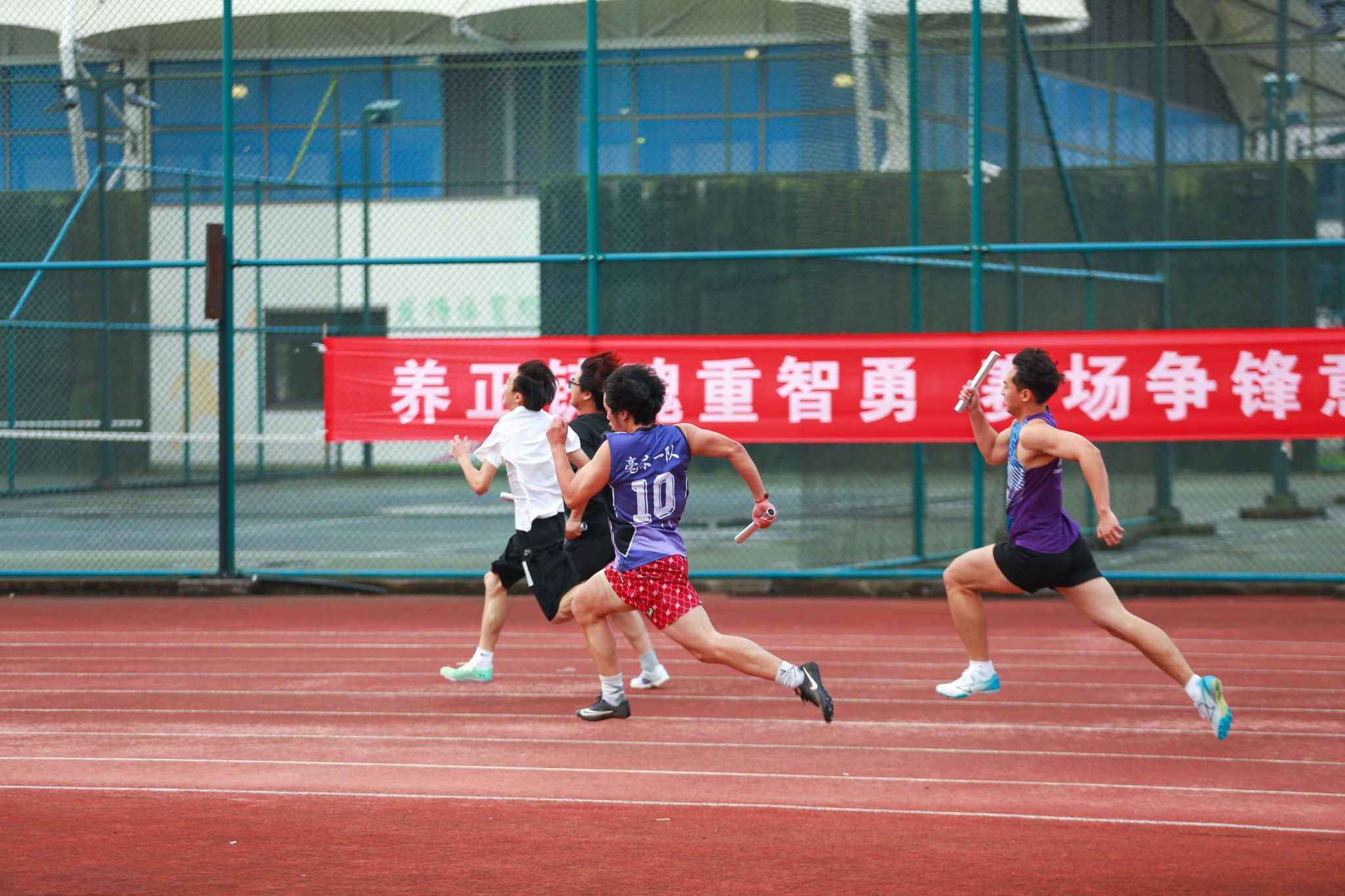 赛场上,运动健儿挥洒汗水;赛场下,工作人员默默耕耘。精准的秒表,丈量着公正;沙哑的嗓音,维系着秩序;忙碌的身影,保障着顺畅;及时的援手,传递着关怀。他们是运动会上“无名”的英雄,同样闪耀着最耀眼的光芒。