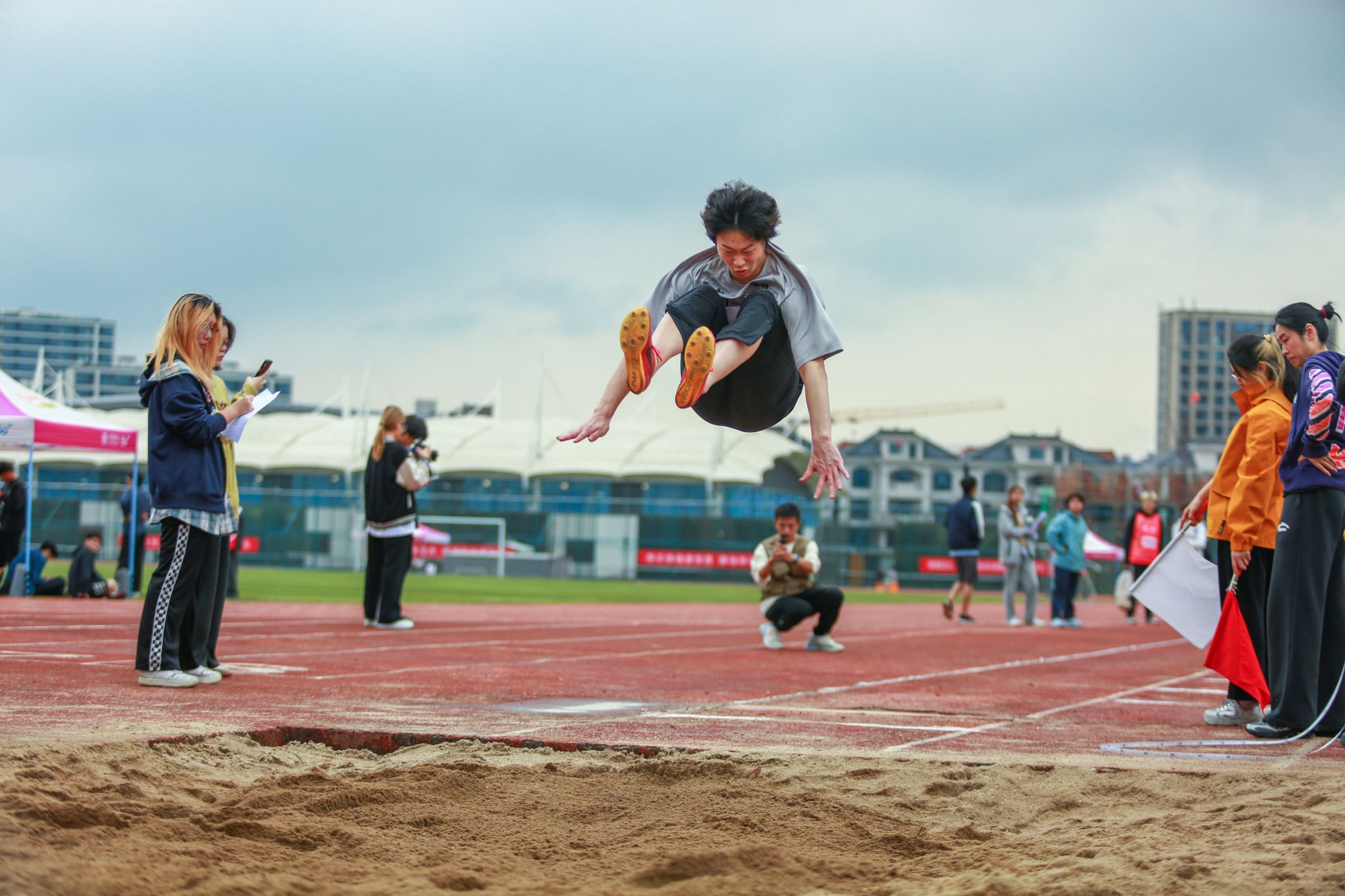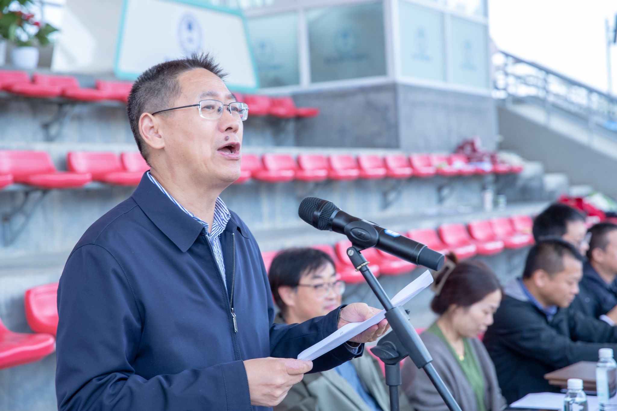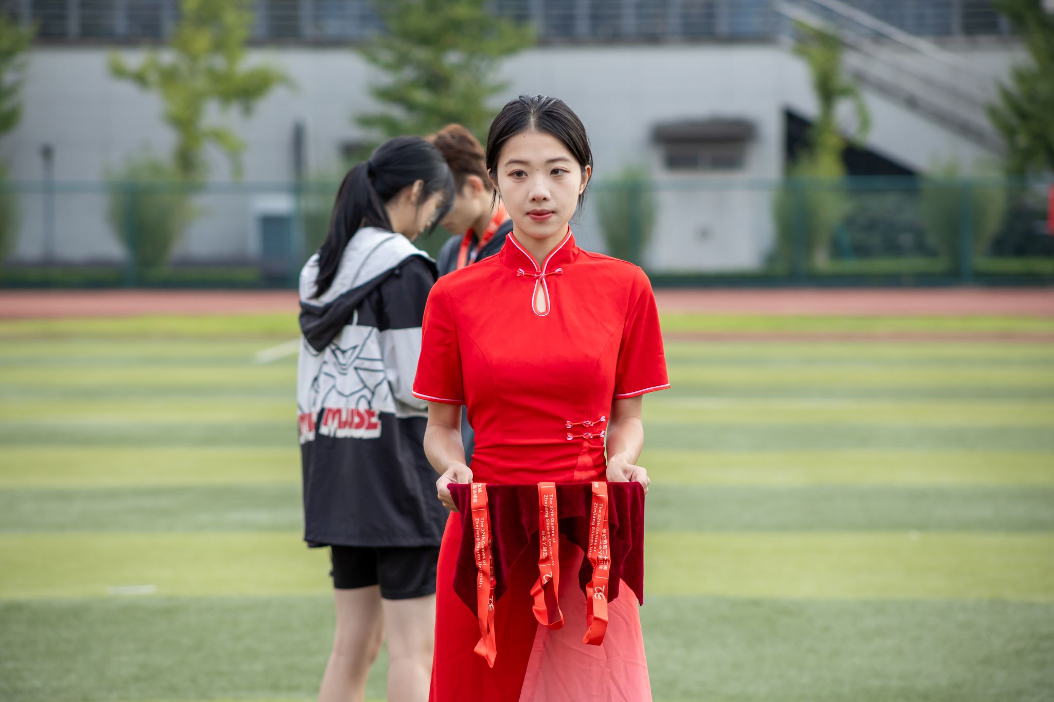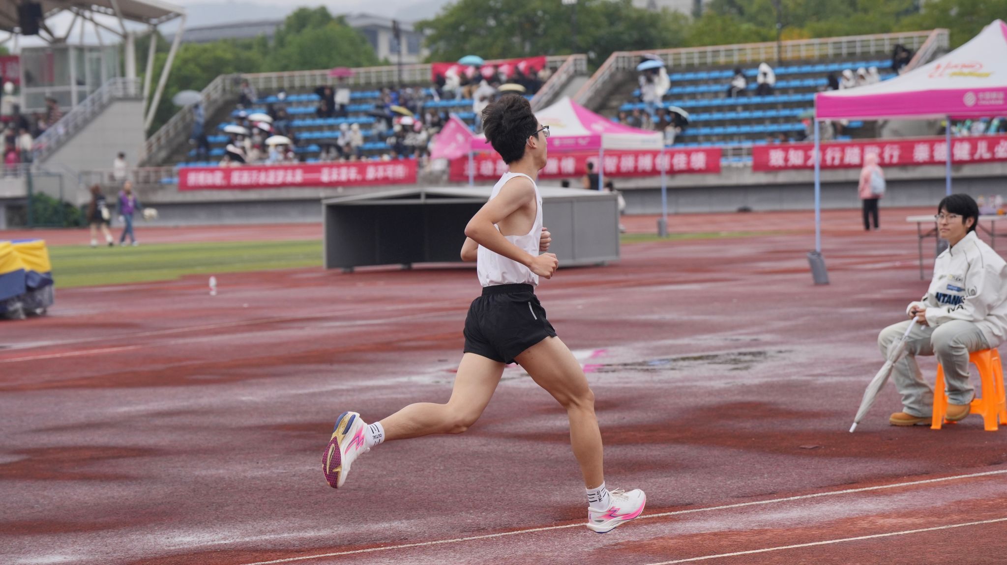 赛场上,运动健儿挥洒汗水;赛场下,工作人员默默耕耘。精准的秒表,丈量着公正;沙哑的嗓音,维系着秩序;忙碌的身影,保障着顺畅;及时的援手,传递着关怀。他们是运动会上“无名”的英雄,同样闪耀着最耀眼的光芒。