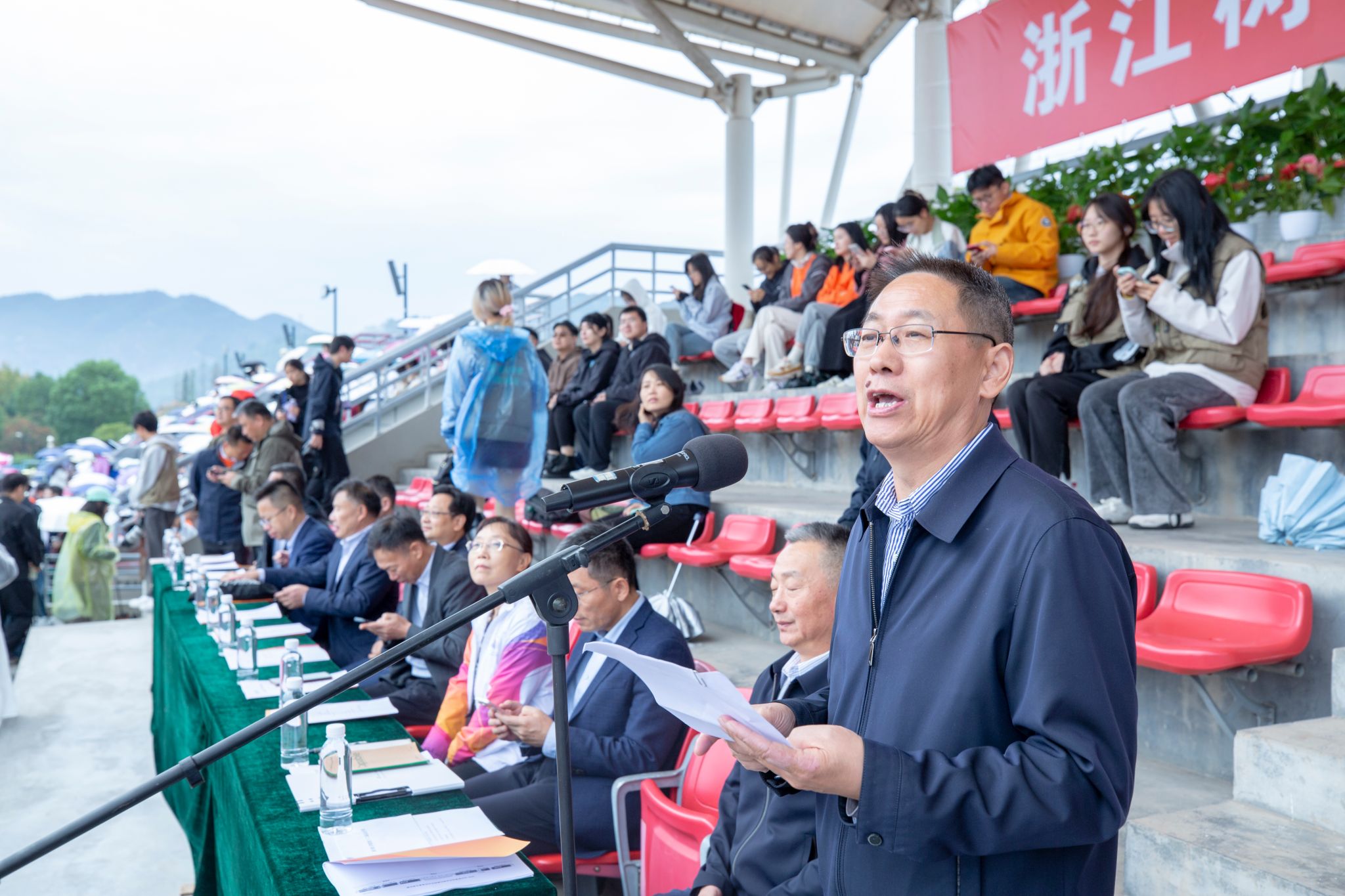 校党委副书记王军致开幕辞。他表示,近年来,学校始终坚持“五育并举”,深耕体育育人沃土,体育工作捷报频传,走出一条高质量发展的“树人之路”。学校校队及个人在国家级、省级等各类大赛中大放光彩,取得多项突破;校友姚攒因在第17届夏季残奥会上的卓越表现,被浙江省政府授予“记大功奖励”。他希望运动员们能发扬“更快、更高、更强、更团结”的奥林匹克精神,以饱满的热情、昂扬的斗志、勇于拼搏的信念,在赛场上赛出风格、赛出水平。