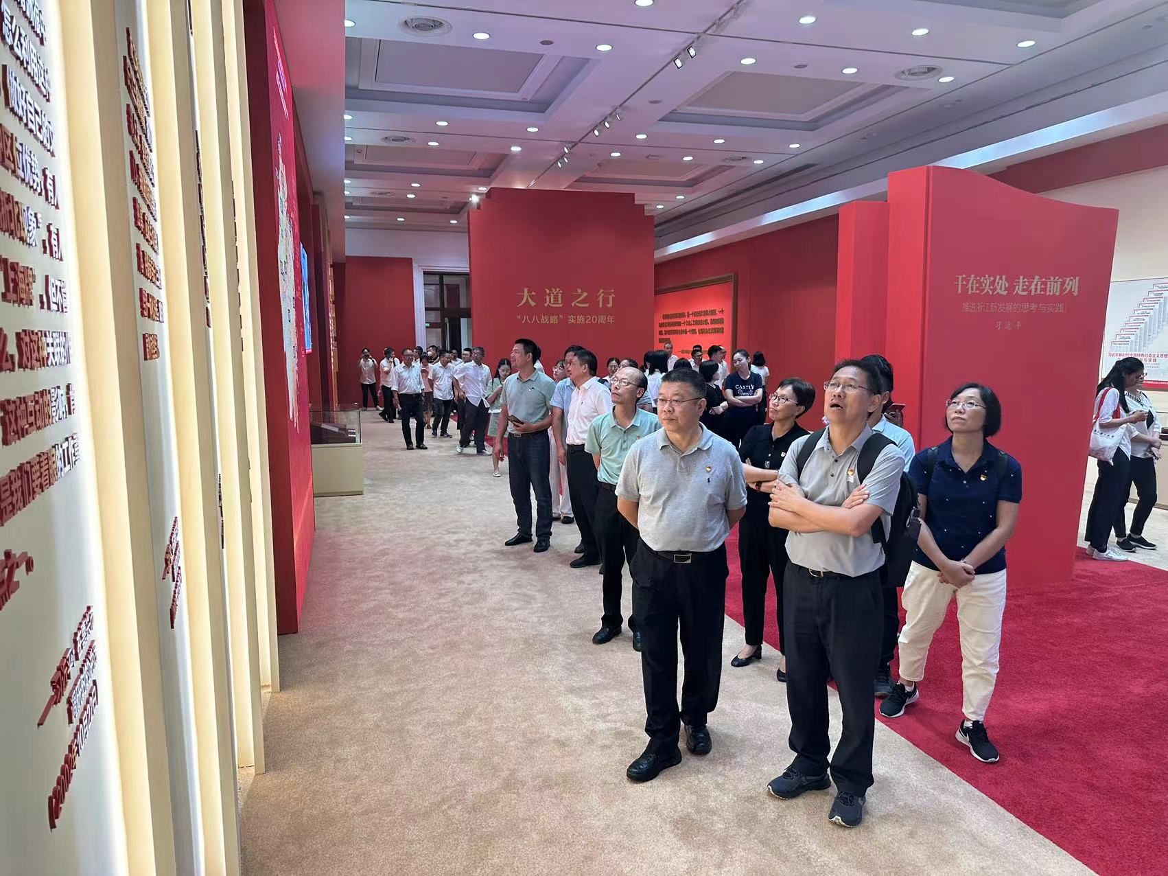 大家边听讲解边驻足观看、讨论与交流。参观途中,章清同志给各位党员上了微党课,让大家更好地在“循迹溯源”中现场感受习近平总书记给浙江留下的宝贵精神财富和实践成果。