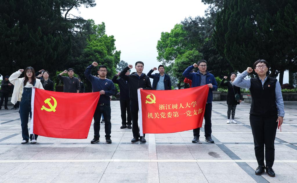 “我志愿加入中国共产党,拥护党的纲领,遵守党的章程,履行党员义务……”铿锵有力的宣誓声,响彻烈士陵园。17日上午,全体党员同志来到四明山革命烈士陵园,拾级而上,瞻仰四明山革命烈士纪念碑,默哀鞠躬、重温入党誓词、绕行纪念碑,表达对革命英烈的追思。