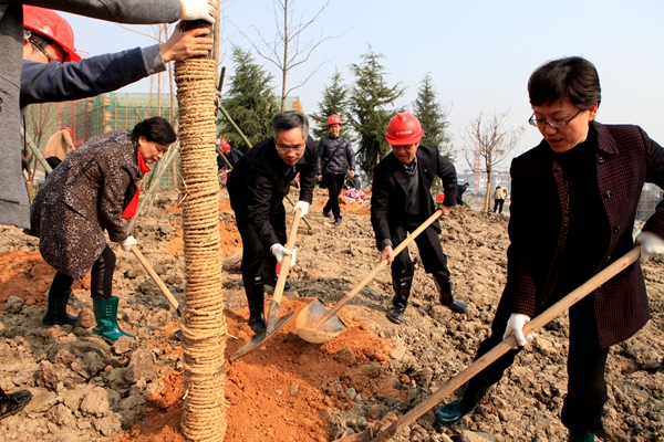柯桥区领导赴永利官网杨汛桥校区参加植树活动