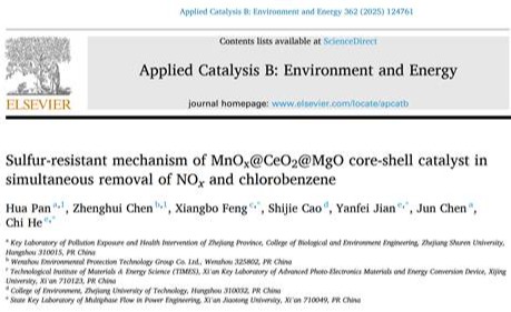 近日,永利官网资源与环境硕建点环境功能材料及污染控制团队在国际权威期刊《Applied Catalysis B: Environment and Energy》(影响因子IF = 20.3,中科院1区TOP)上发表了题为“Sulfur-resistant mechanism of MnOx@CeO2@MgO core-shell catalyst in simultaneous removal of NOx and chlorobenzene” (doi.org/10.1016/j.apcatb.2024.124761)的研究论文。团队负责人潘华教授为第一作者,联合培养研究生陈郑辉为共同一作,合作单位西安交通大学何炽教授和建艳飞助理研究员、...