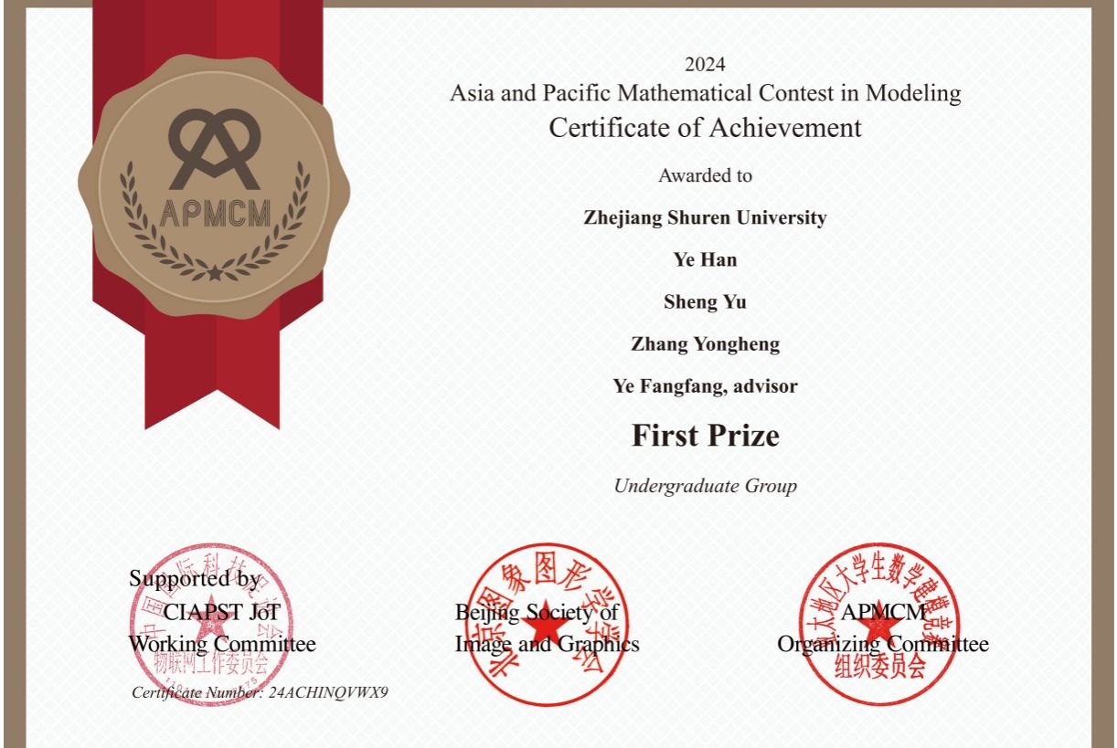 2024年第十四届亚太地区大学生数学建模竞赛于2024年11月进行,永利官网学子在家扬学院、信息科技学院的积极推动下,在指导老师团队冯淑娟教授、王金铭教授、叶芳芳博士、朱敏博士的悉心指导下,共有6支队伍参赛,其中,2支队伍获得一等奖,2支队伍获得二等奖,4支队伍达到总竞赛成绩的前20%,另有成功参赛奖队伍2支,实现了此项赛事“零”的突破。亚太地区大学生数学建模竞赛(Asia and Pacific Mathematical Contest in Modeling,简称APMCM)...