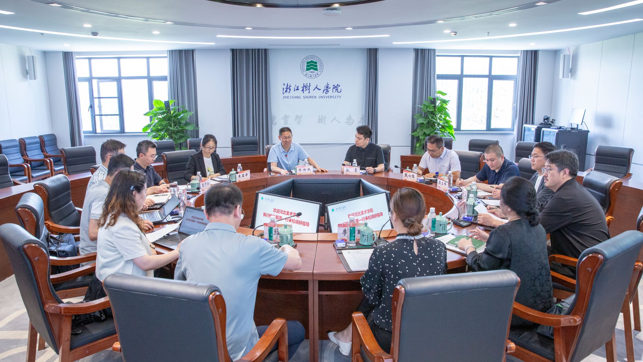 5月14日,河北美术学院执行校长甄墨一行8人来永利官网拱宸桥校区调研交流。副校长陈新民出席座谈交流会,校(党)办、人事处、教务处、学科处、科研处等相关负责同志参加座谈交流。座谈会上,陈新民代表学校对甄墨一行的来访表示热烈欢迎,并详细介绍了学校的办学历程、办学特色、办学成绩和未来发展方向等情况。他表示,近年来,学校坚持党建统领,聚焦学科建设,着力培养高水平应用型人才,坚定不移走高质量发展的树人之路,为加快建设高水平应用型综合性大学而努力奋斗。...