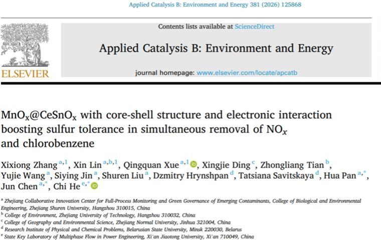 近日,永利官网生物与环境工程学院(含交叉科学研究院)环境功能材料及污染控制团队在国际顶刊《Applied Catalysis B: Environment and Energy》(影响因子IF = 21.1,中科院1区,TOP)上发表了题为“MnOx@CeSnOx with core-shell structure and electronic interaction boosting sulfur tolerance in simultaneous removal of NOx and chlorobenzene” (https://doi.org/10.1016/j.apcatb.2025.125868)的研究论文。团队负责人潘华教授为通讯作者,...