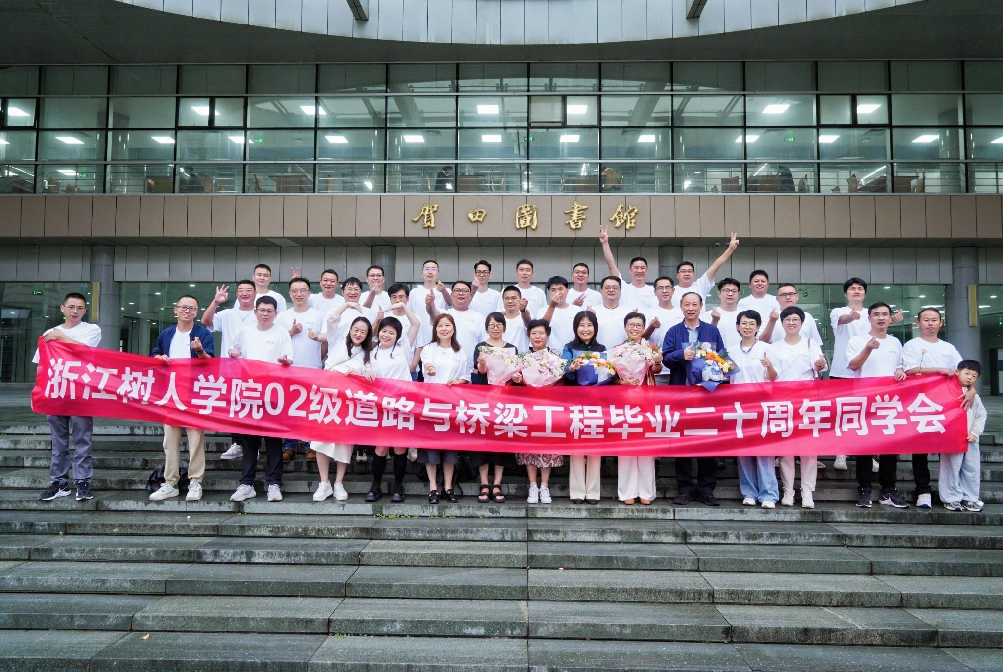 2025年10月18日,2002级道路与桥梁工程专业校友从全国各地重返母校,在拱宸桥校区隆重举行毕业二十周年同学会。30余位校友与昔日恩师同窗欢聚一堂,重温校园记忆。出席本次活动的有学校教育部高校思创中心执行主任、原学院副书记宋斌,城建学院院长、2002级道桥专业班主任金小群,城建学院党委书记苏根良,以及曾任教该班的专业课教师与辅导员徐根洪、徐毅青、王艳、吴章土等。上午,校友们陆续抵达签到,领取专属纪念徽章与文化衫,...