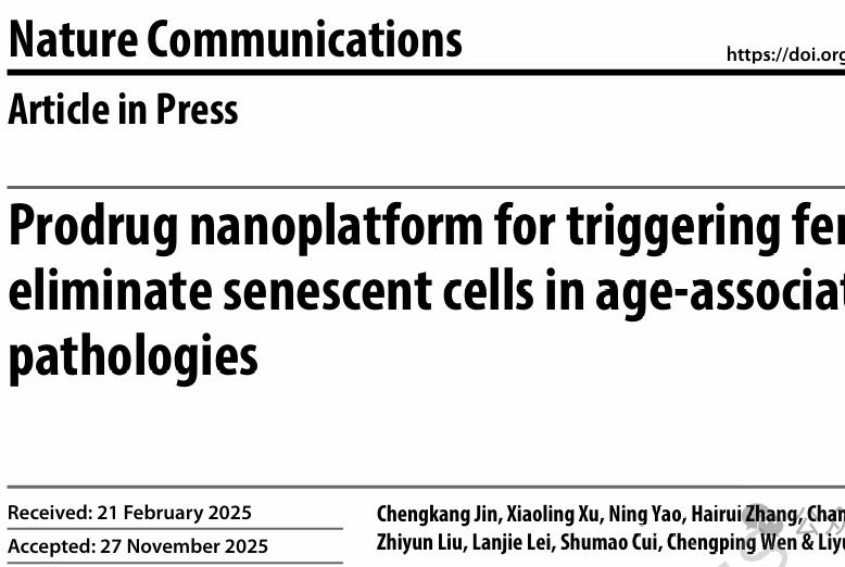 随着人口老龄化加速,中国60岁及以上人口已突破3亿人,如何让老年人不仅“活得更久”,更能“活得健康”,成为医学界亟待解决的难题。近日,转化医学研究院史丽云教授团队在国际知名期刊《Nature Communications》上发表了题为《Prodrug nanoplatform for triggering ferroptosis to eliminate senescent cells in age-associated pathologies》的研究成果。该研究开发出一种能够精准识别并清除体内“僵尸细胞”的纳米平台,为延缓衰老及相关疾病治疗提供了全新的思路和潜在工具。...